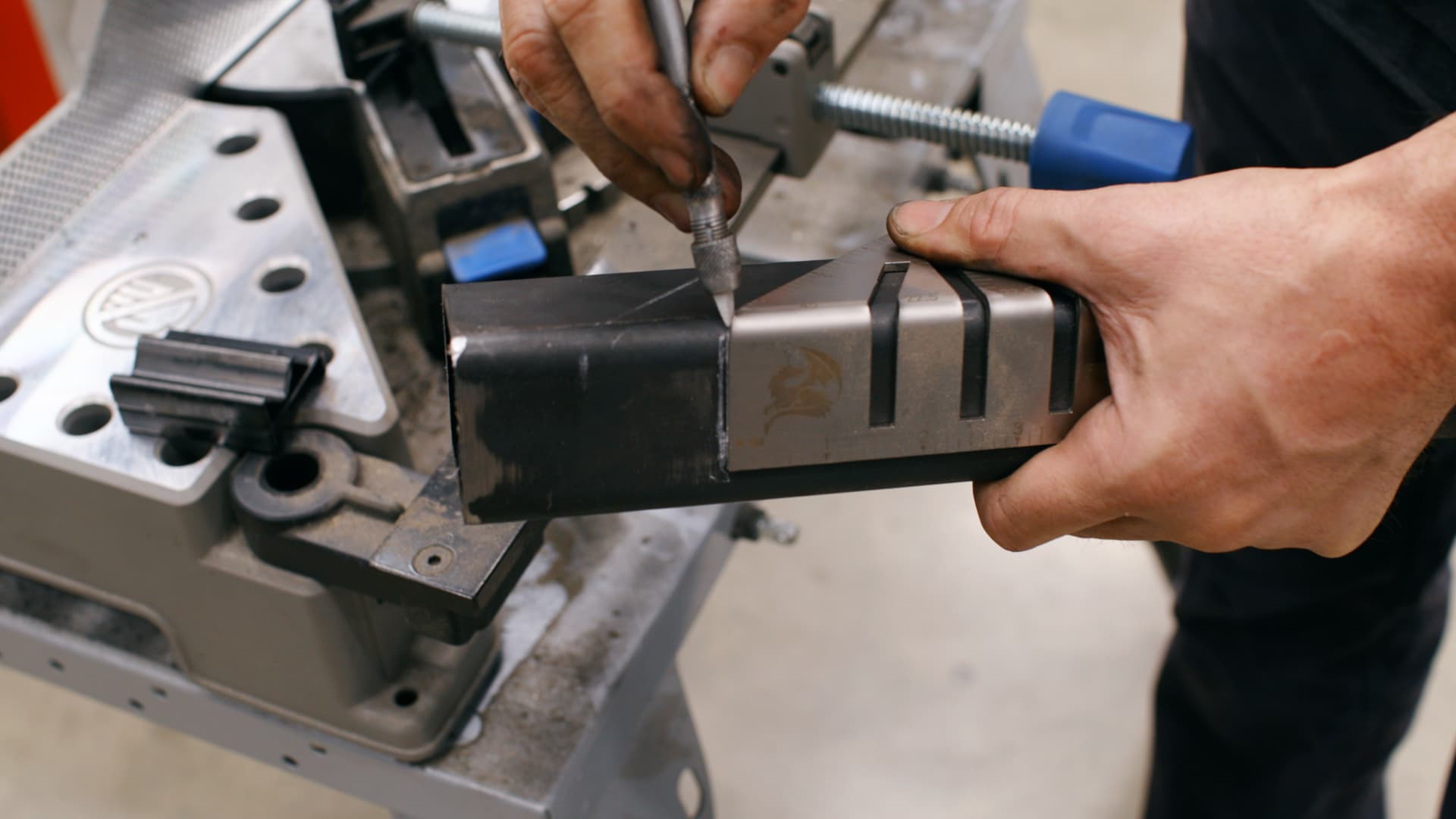 It’s surprisingly versatile. You can even use it as a small squaring tool after welding, since it balances itself with a built-in “kickstand.”