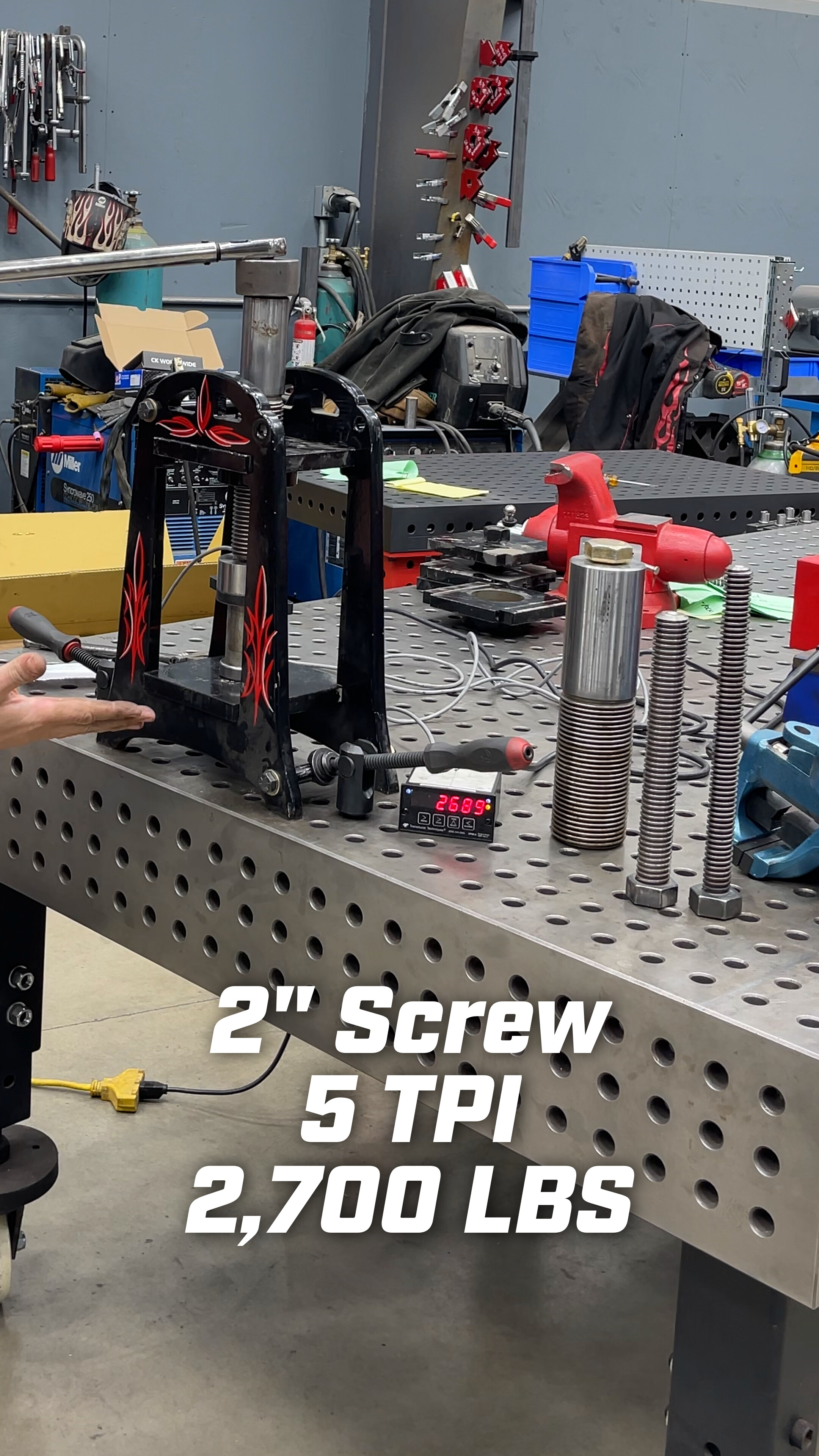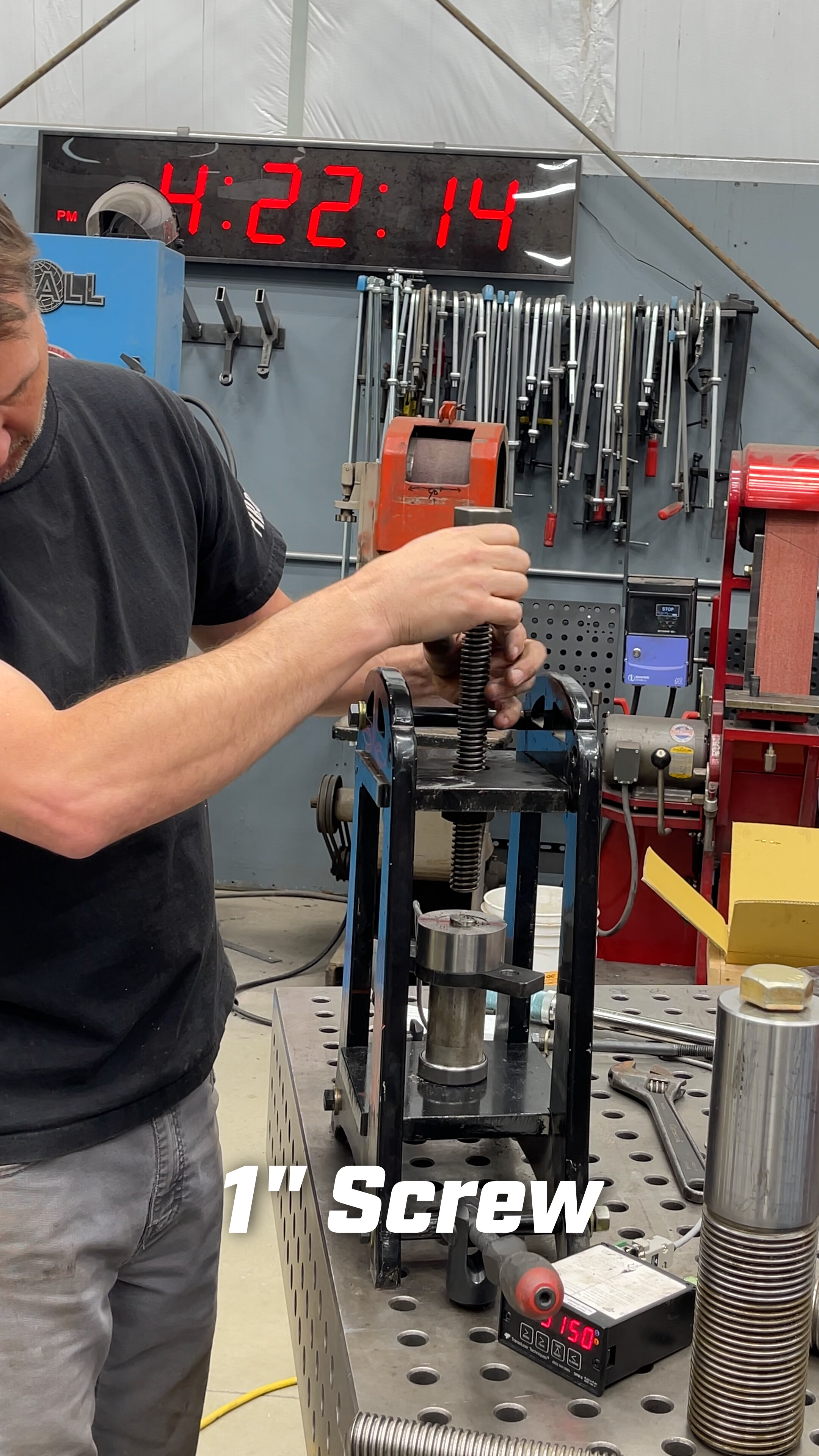 For this test, I built a small setup to measure how screw diameter affects output force. Every screw had 5 threads per inch; the only difference was the diameter. We applied the same torque each time (50 ft-lbs) and measured the output with a load cell.