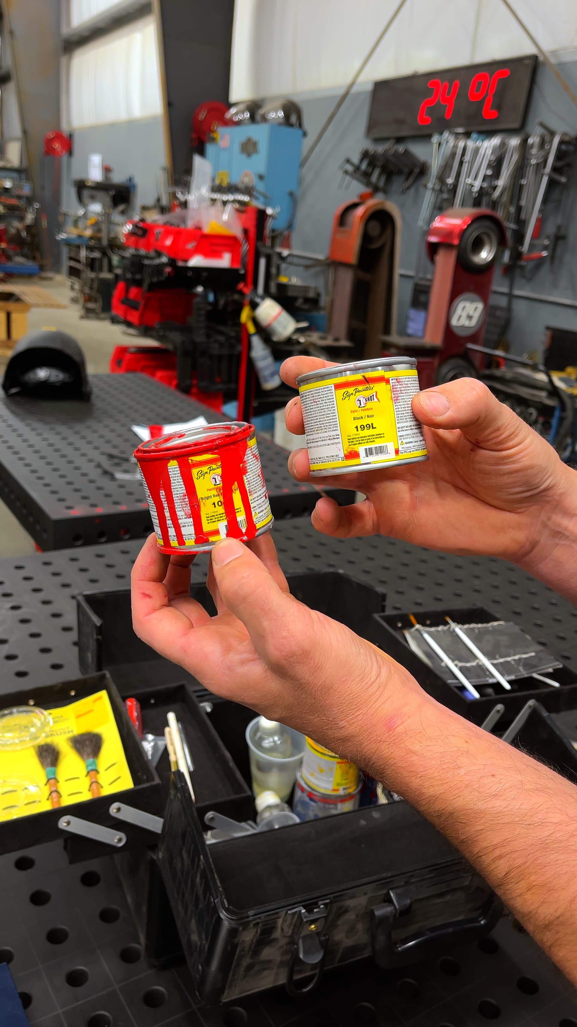Here’s where you start: I grabbed some one-shot enamel paint. There are lots of colors to choose from, like gold, blue, white, yellow etc. For this table, I went with a red color for this table.