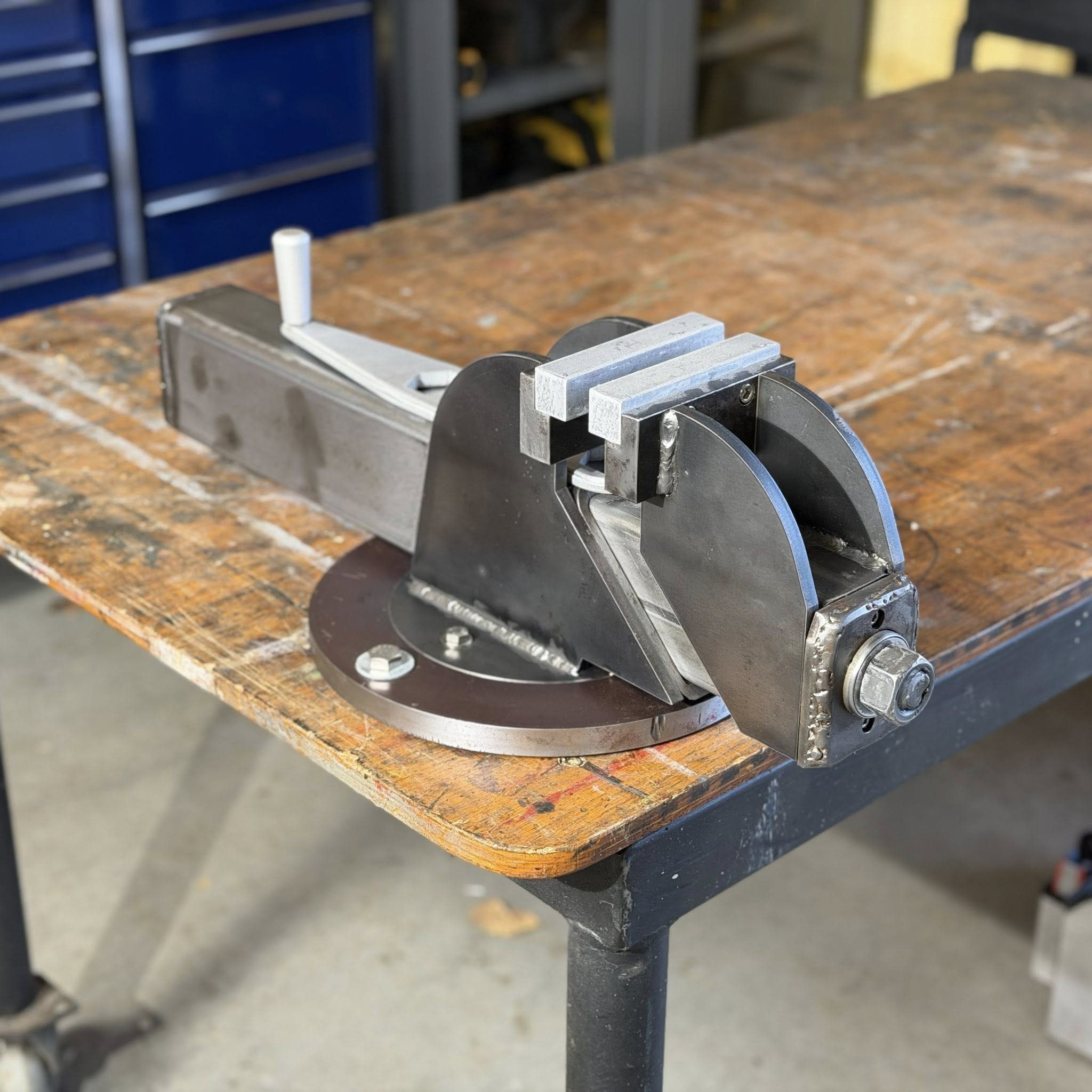 I’ve watched Jason’s video on making a vise along with a few others. I don’t have a shop per say just my tiny garage but told myself to try to build one as I can’t afford a hardtail. I don’t have the knowledge nor the tools to make a swivel base. Took me way longer to build than it should of but I tried!! Not perfect , few things I could have done differently but it works and im happy!!