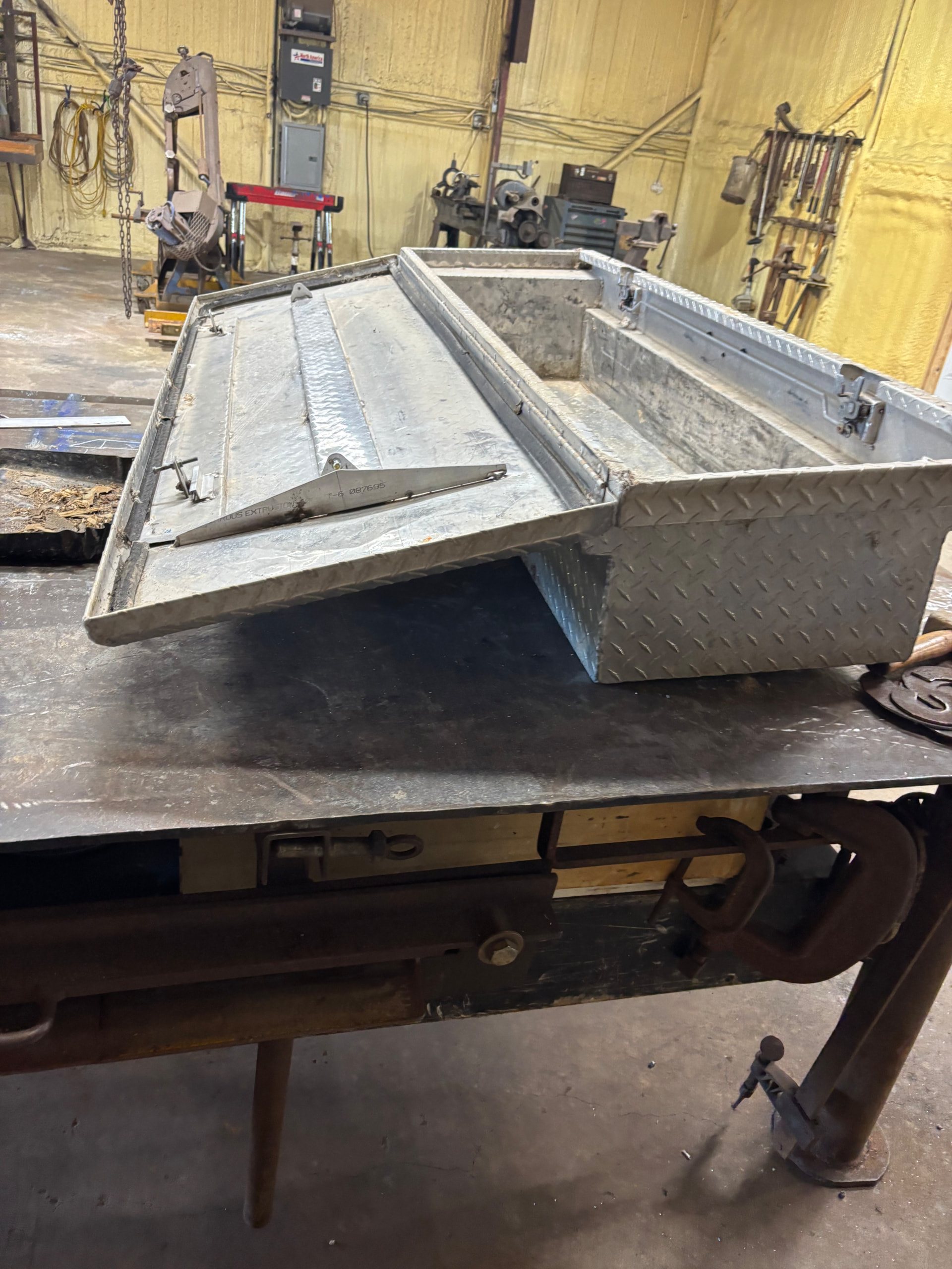 So I didn’t really use any fireball tools for this, nor did I weld on it, but thought I’ld share another tool box trash to treasure. You can pick these truck boxes up for 50$ on the net all the time. Used my metabo with a cut off blade for some of the cuts and plasma cutter for the rest. Then riveted it all together. It was fun project thinking about what way to bind everything to make it work and how to strengthen it back up. Once you start cutting it apart they get flimsy pretty quick. Made good box in hog barn for some of kiddos show supply’s. Think I’m gonna buy me a nice used nibler after that project. Any suggestions?